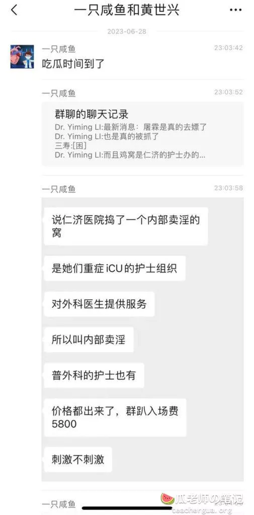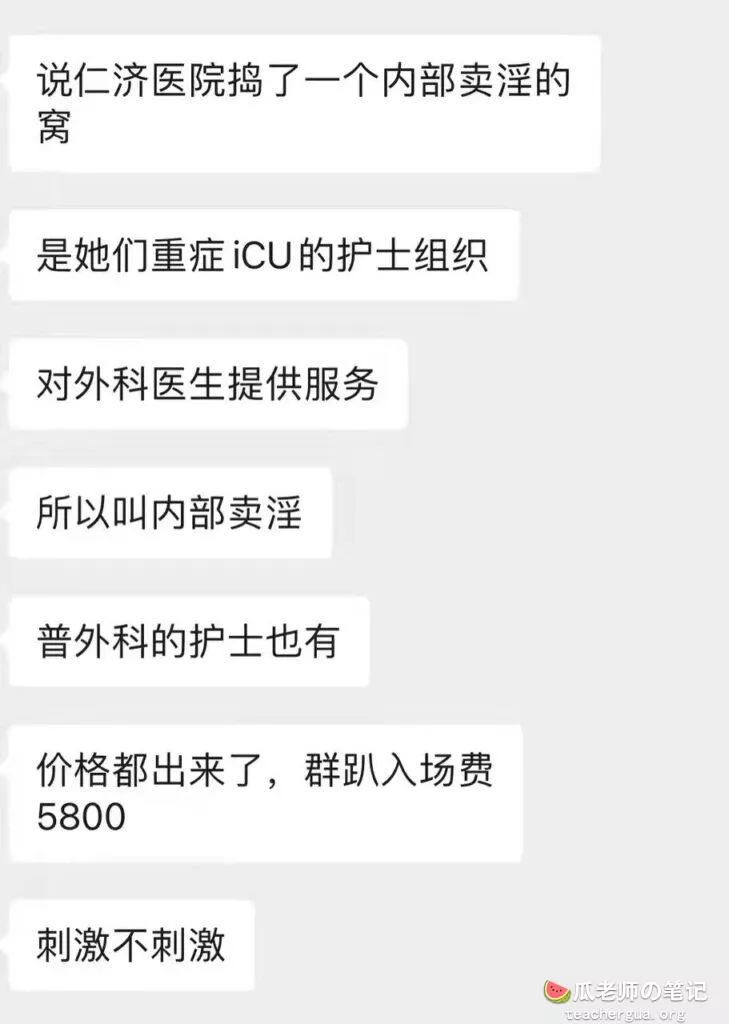 吃瓜,网传仁济医院icu护士组织内部卖银,针对医院外科医生,一晚5800元