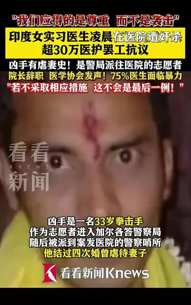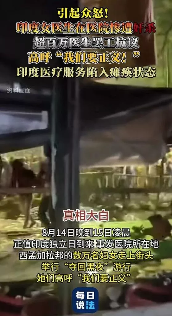 8月9日上午,31岁的印度女医生Moumita Debnath在加尔各答的一家公立医院惨遭杀害。Debnath医生在连续工作了36小时后,选择在医院的研讨室内休息,然而不幸遭遇了暴行。她的尸体被发现时,呈半果状态,身上多处受伤,场面令人心碎。