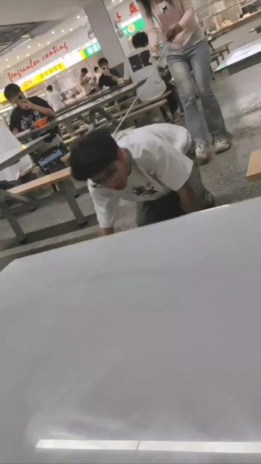 大学版主人的任务?大学食堂惊现女大狗链牵着男大还会叫?