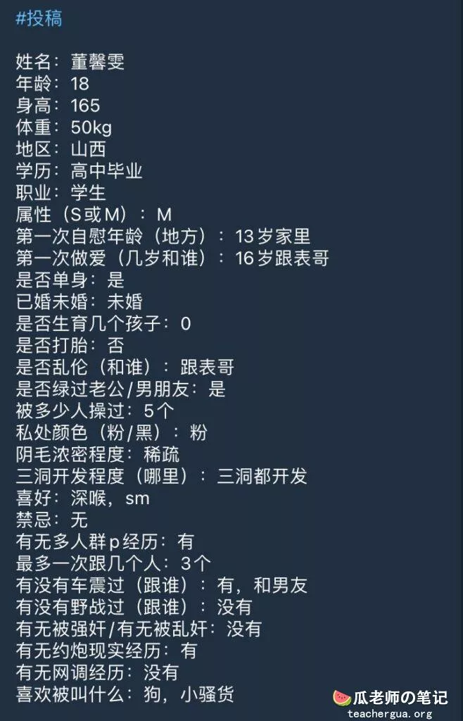 山西大瓜 m属性母狗被曝光 自爆有多人经历以及错乱关系