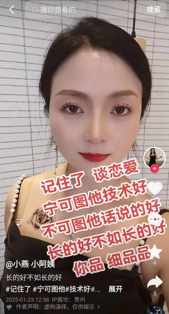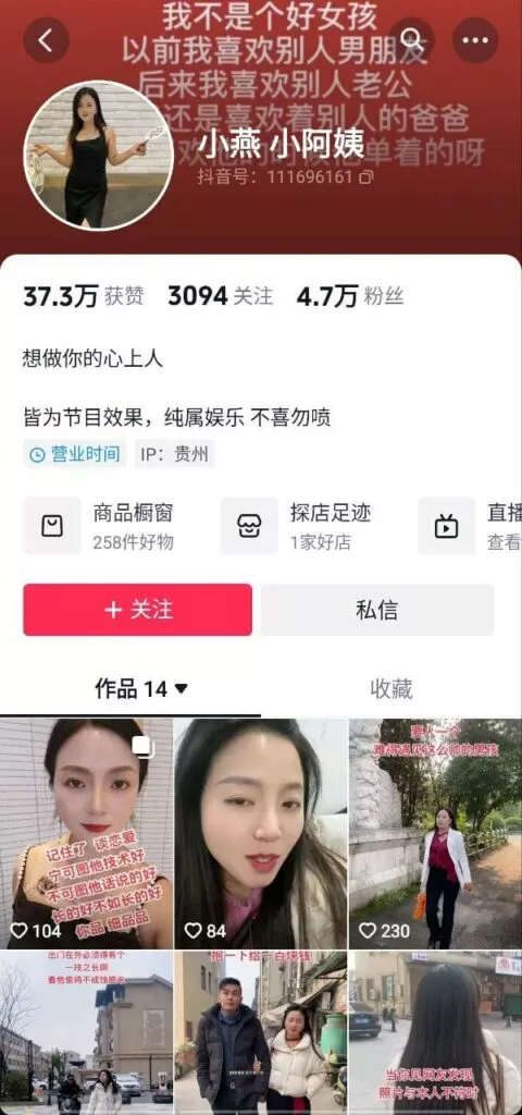 抖音上拥有4.7万粉丝的轻熟女【小燕小阿姨】,她的美腿修长,魅力四射,丰满的臀部更是风韵犹存。为了吸引更多粉丝并提升热度,她常常与粉丝进行1对1的私密互动,展现出迷人的魅力。