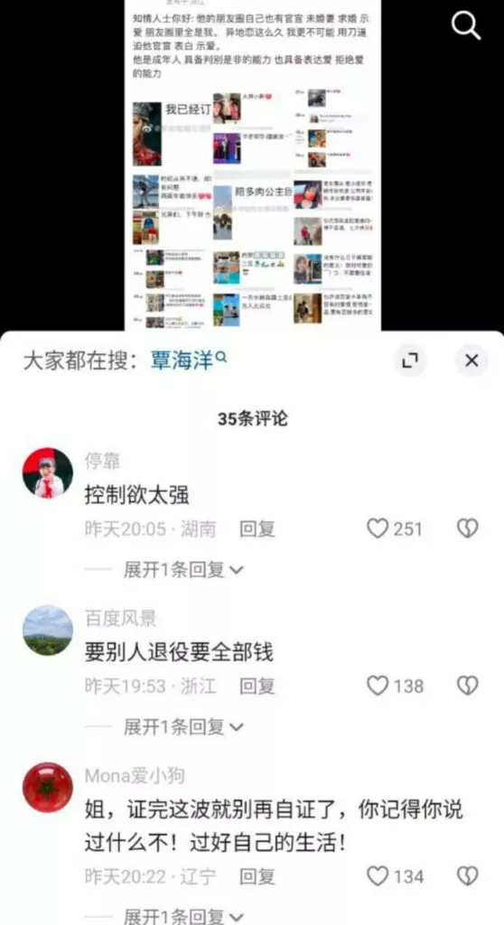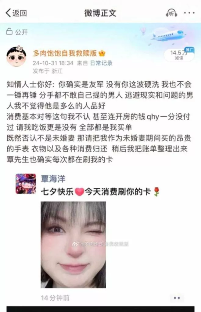 某知情人士的爆料,覃海洋与未婚妻的语音记录