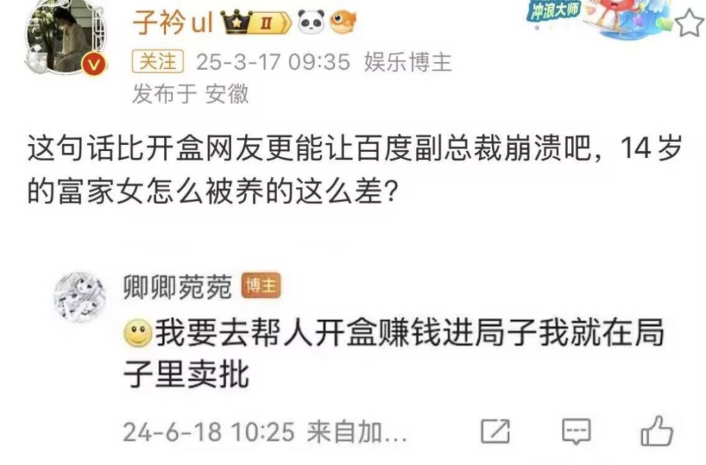 现在的饭圈文化已经变的越来越魔楞,百度副总裁谢广军13岁的女儿在微博与一位网友起了争执,结果就这样把这位网友的个人信息全部开盒公布到微博,而起因竟然是在讨论张元英的24小时行程。