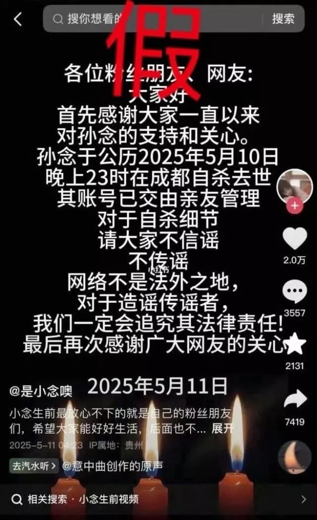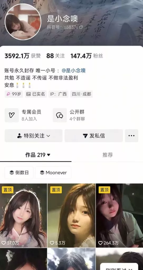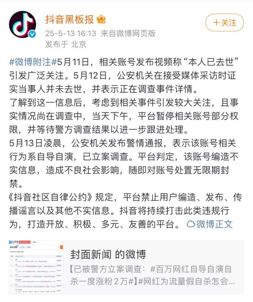 看广告复活?150万粉丝抖音网红是小念噢自导自演去世账号被封玩脱了