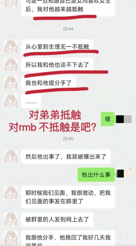 她辩解自己是女同,抵触男生,那为什么不早点告诉对方呢?