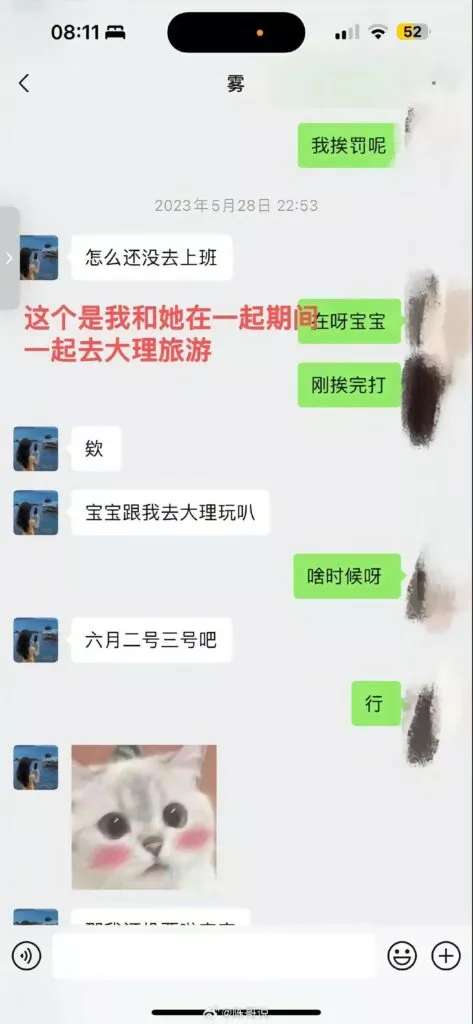 肥猫事件的最新进展如今已浮出水面,其间的纷争与揭露愈发引人瞩目。据其中一位当事人爆料,他/她就是被小三的那位。该当事人在完全不知情的状况下,与谭竹有了两年的恋情。直到肥猫事件曝光后,才得知事件的始末,并公开了相关的证据。原来,在谭竹与肥猫的交往期间,她一边向肥猫索不停的取金钱,一边不停的给肥猫戴着绿帽子!