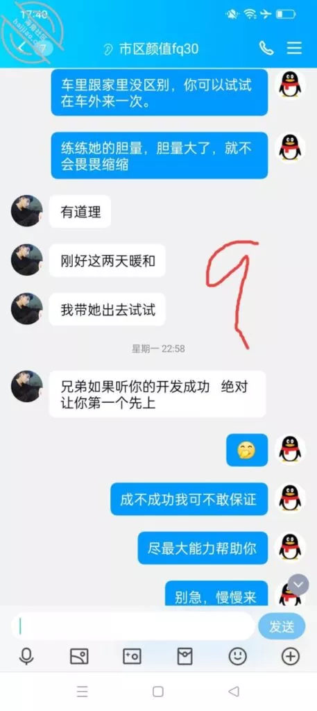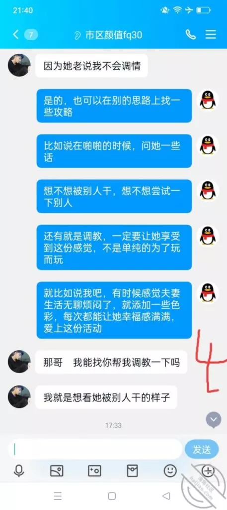 本来呢,我没当回事,因为我感觉这种情况的很多,最后都是不了了之,这个群友是新进群的,再别的同城群也没见到,应该是小白类型的,但是身上这股不折不扣的劲,让我感觉有点意思了,如果我能引导他成功开发老婆,我觉得还是蛮有意思的一件事,看看能不能跟上进度看看,怎么把良家开发成荡妇的