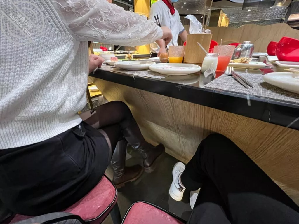 昨晚在一块见面的时候就已经五六点了,我定了个地方碰了面,见面的时候第一眼两口子就把我惊讶到了,属于高质量人群,女方非常精致的妆容,穿着一身非常潮的宽松裤配着黑色上衣,两个大大的耳环显得很有范,有点像休闲街头风,俩人年龄大概三十出头