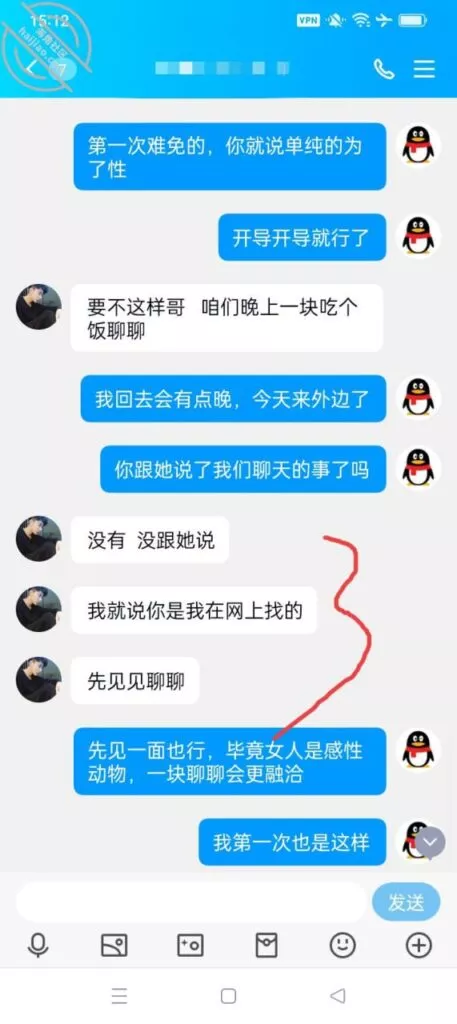 我也动了这份心思,群里找了个技师,找了几天没找到,不找的时候却发现群里有人发消息,这不是刚好随我心意。刚好这天下点雨阴天,我俩也没事,于是就预约了一个