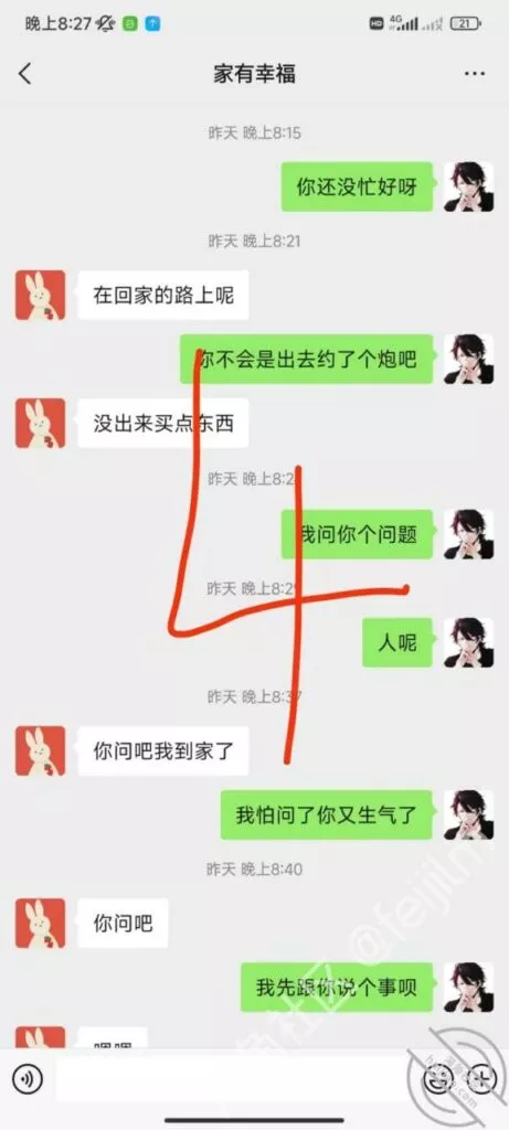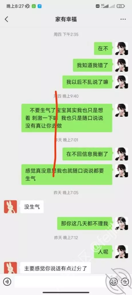 中途我想过再跟他说说好话哄哄她  结果 他拿我爸爸威胁我   我不知道当时怎么想的 就说了一句  如果跟你聊天的那个人不是我  你是不是就跟人家去了     说完这句话 我妈妈 就没回我了   估计他心里也在发虚
