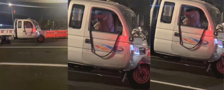 可以看得出两位一定是真爱,不是宝马也不是奔驰迈巴赫,不是兰博基尼也不是保时捷,而是一辆拉货三轮车,就这么搞起了车震,几百万的车还没享受到的待遇,三轮车提前完成目标。