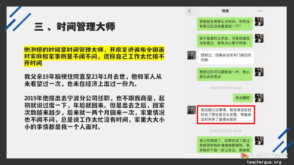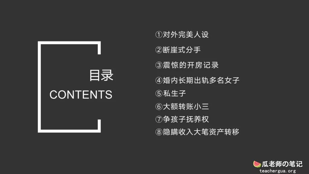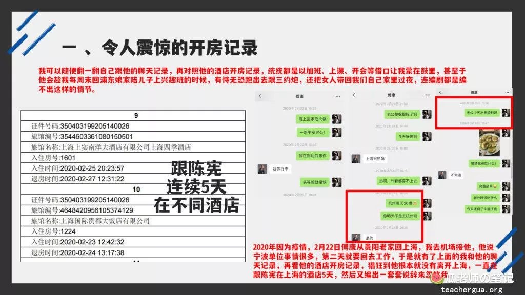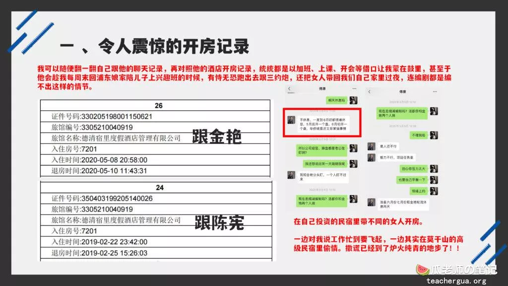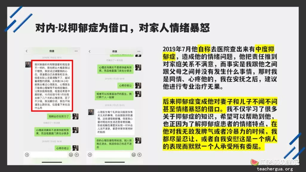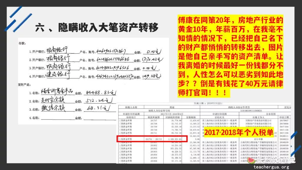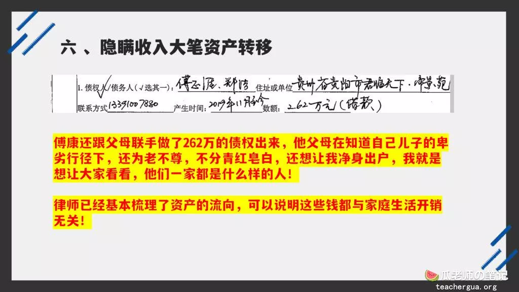 这次的PPT门事件更为震撼,把这位傅康渣男称为人渣已经算是赞美了,真是猪狗不如啊,长期出轨多人还有了私生子,谎称自己有抑郁症把妻子蒙在鼓里,然后暗地里转移资产,最终害的妻子流离失所。详细的内容各位瓜友慢慢啃吧,瓜老师啃这个瓜是带着润滑油一起啃的。