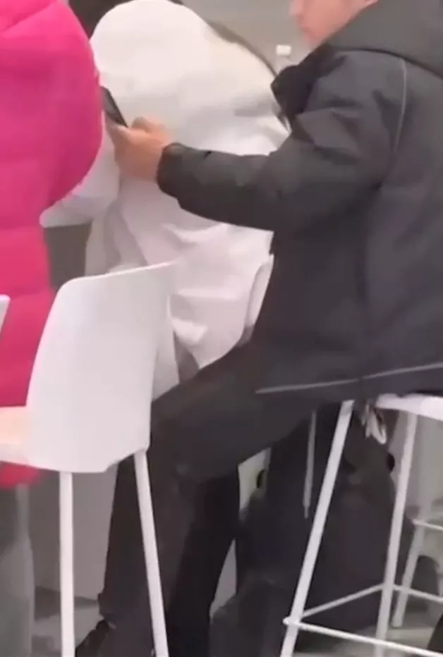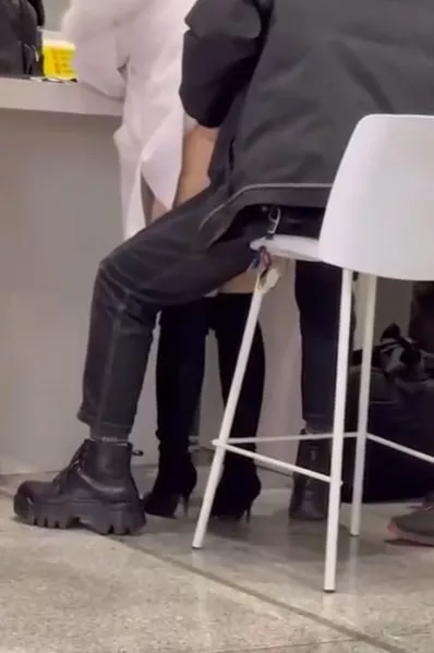 在候车厅的所有人似乎都成了这场戏剧的观众。在候车大厅的休息区,竟然有一对情侣在这种公共场合进行亲密行为。利用男子衣物的遮挡,女子竟然脱下了裤子,和男子在候车厅中进行隐秘的亲密举动。