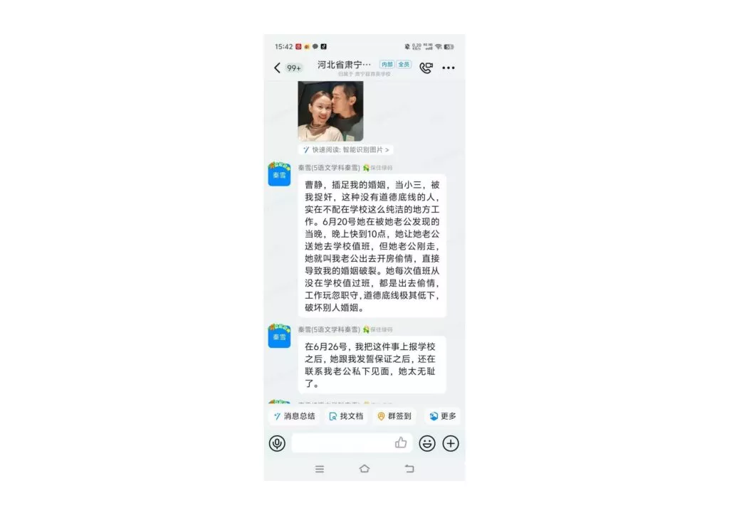 河北沧州育英中学的一位女教师曾静,因违反师德而引发关注。她不仅已婚,竟与班内学生的家长发生不正当关系。事情败露后,她不仅没有悔改的迹象,反而还暗中与其出轨对象保持联系。最终,受害者忍无可忍,制作了一份长达32页的PPT,详细揭露了这名教师的不当行为。