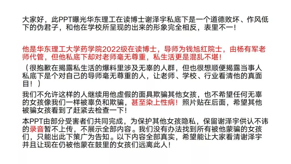 PPT曝光华东理工大学毒王上海211名校在读博士谢泽宇脚踏多只船化身毒王内附原件下载