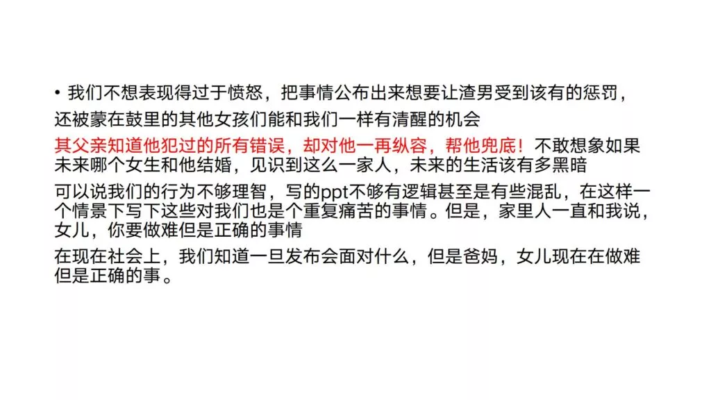 24页的PPT曝光了华东理工大学毒王谢泽宇,此人是上海211名校的学生。他的未婚妻,交往了五年,揭露了他的不堪行径:他长期与多名女性保持暧昧关系,身患性病却毫无自爱之心,利用PUA手段Cao控多位女性,从而导致她们也受到感染。同时,他还利用研究经费来贿赂他人,为自己的私利谋取便利,甚至公开辱骂自己的导师。