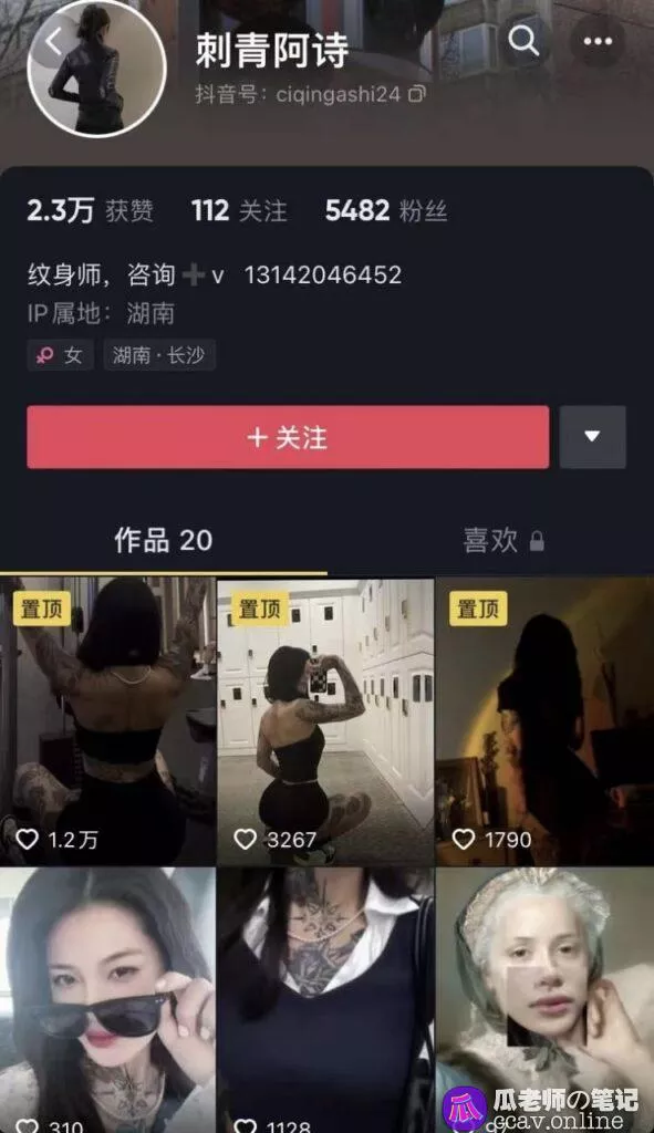 抖音纹身师健身蜜桃臀博主刺青阿诗私密视频流出