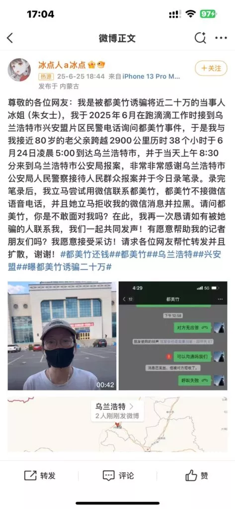 吴亦凡事件女主角都美竹被控诈骗案?单亲妈妈爆料都美竹诱骗20万未还