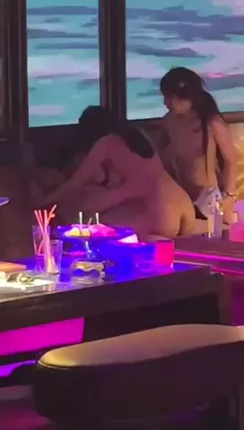 有钱确实能使人肆无忌惮。其他情侣在酒吧玩乐时可能会有所顾忌,然而这位先生却显得毫无顾虑,不仅光明正大,甚至上演了一场一王两后的全果激情三人行!