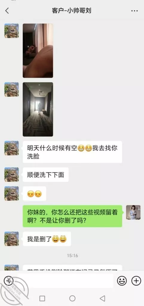 彻底毁三观啊!!想不到姑姑的炮友不止一个,连客户都有一腿。昨晚等她洗澡的时候偷拿手机翻她记录发现不止一个炮友。除了那小狗还有客户,都是年轻小伙子。昨天又约了个客户今天去她店里做,是不是做美容的离异少妇都那么搔的啊、??半个月前和别人做了还边做边拍视频。