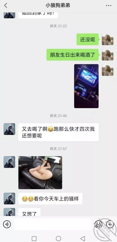 半夜十二点我下班了,回来发现她还没回。心态好炸裂这搔B要给Cao烂了现在还不回。一直到半夜三点左右她才回来一身酒气,我假装给她吵醒说了她几句喝那么醉。给她温了瓶扔,在她去洗澡的时候,悄悄把她手机打开看了和那小狗的聊天是出去约了,先车震在去开房还拍了车上的照片。这搔B真会玩。那小狗还发了照片过来这身材别说女人都喜欢。他们八点就分开了,后面又和其他去了酒吧玩才和个烂醉回来。。。看着她和小狗的聊天记录一下子就硬了,真想脱光衣服推开洗手间的门进去把她歼了。。哎。。没那胆。