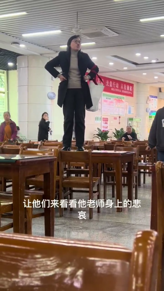 近日,湖北大学一名女教师突然站在校内食堂的饭桌上,在这个正直午休饭点的时间段,怒怼学校领导不作为不调查,起因是自己的丈夫在校内被歹徒害命,但事情发生三年后仍未有任何答复和调查结果。