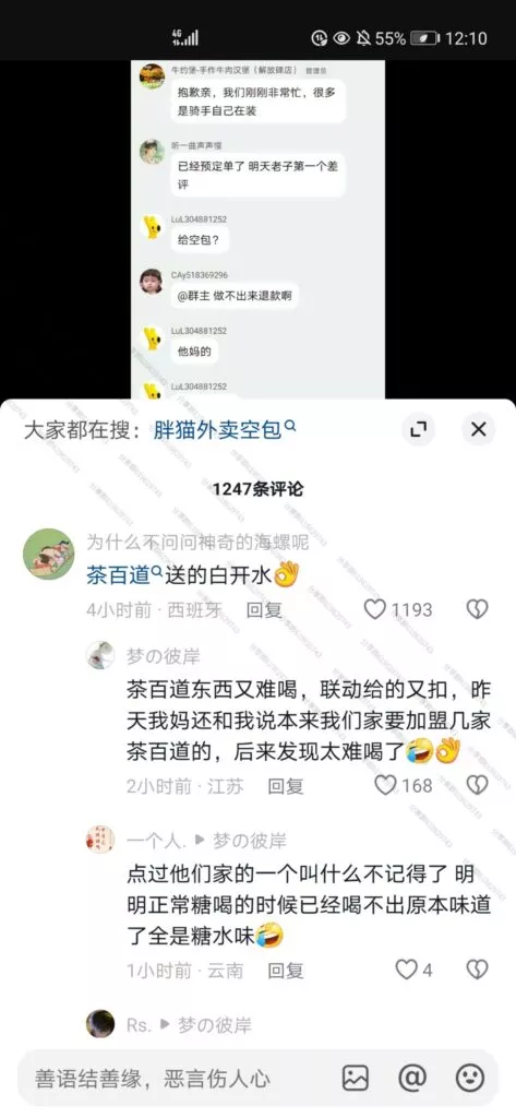 令人更加痛心的是,一些网友自发地纪念行为,为胖猫也就是跳江的纯爱战士买他最爱吃的螺蛳粉、华莱士、麦当劳等外卖,送至胖猫跳江的地方,结果有路过网友发现,大部分外卖全都是空包!!!