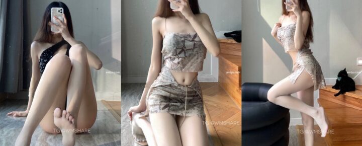 蒹葭苍苍写真:灰色吊带裙搭配白色丝袜,展现优雅与性感(共40张图片)